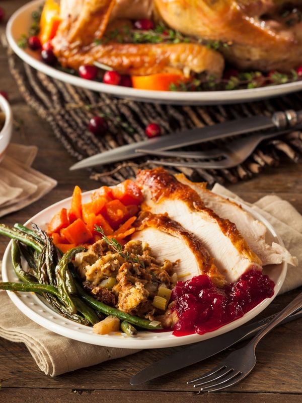 Instead of turkey, lemon herb roast chicken pre-sliced in onion gravy is available for substitution, and must be requested at time of registration.